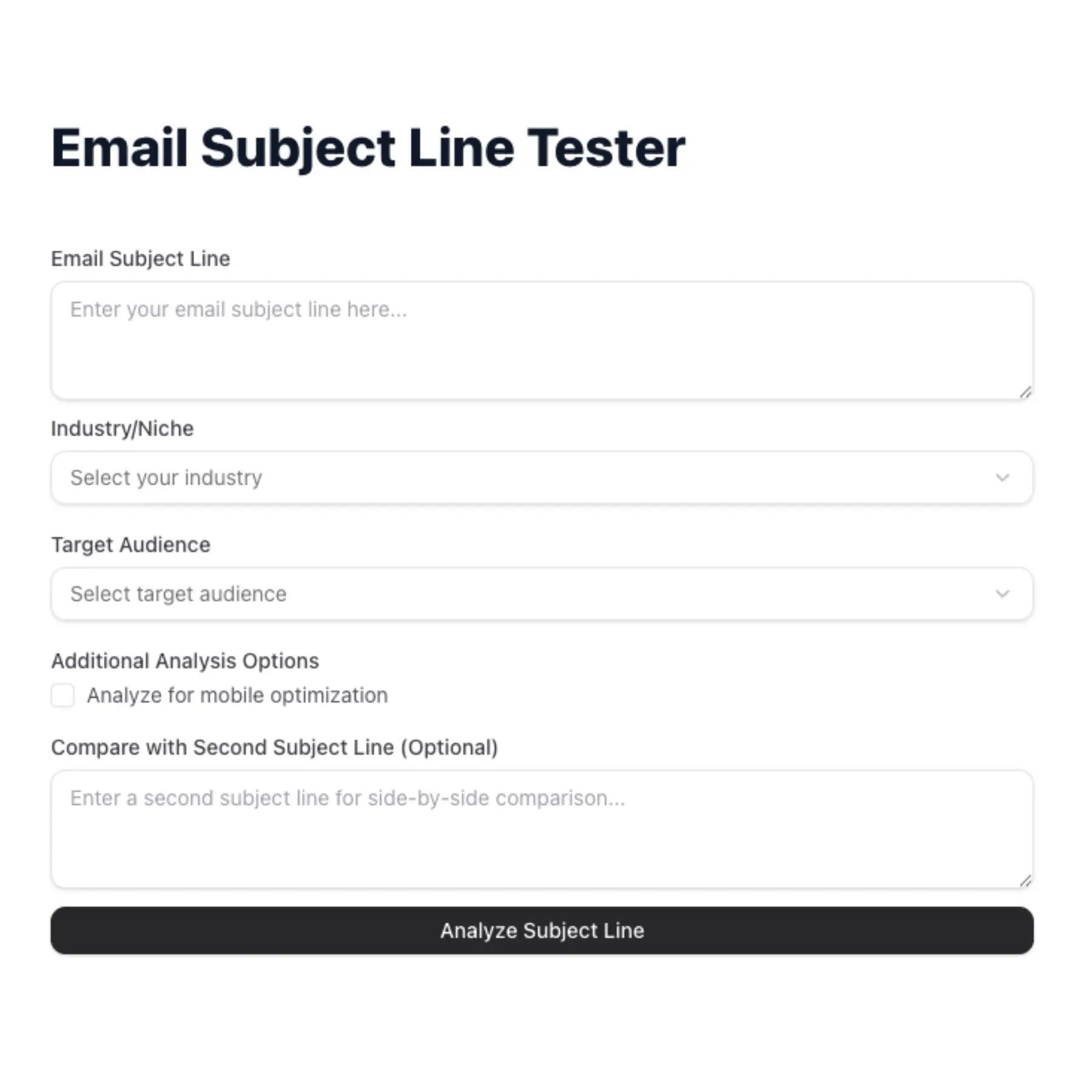Want higher open rates? Drop your email subject line into our free tool and get instant, data-driven feedback tailored to your industry and audience.